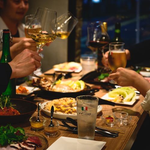我們有一個帶門的獨立房間,最多可容納 14 人。包含無限暢飲選項的套餐起價為 4,980 日圓。在私密空間享用新鮮的義大利海鮮,是公司宴會或朋友聚會的理想選擇。
