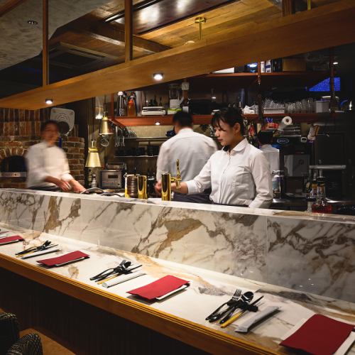 一樓的吧台座位是特別的座位,您可以肩並肩地坐著,享受開放式廚房帶來的沉浸式氛圍。觀看廚師烹飪,沉浸在香氣和聲音中,會讓你們的約會更加特別。