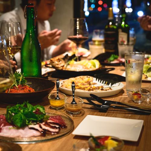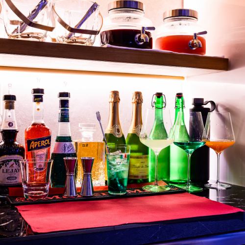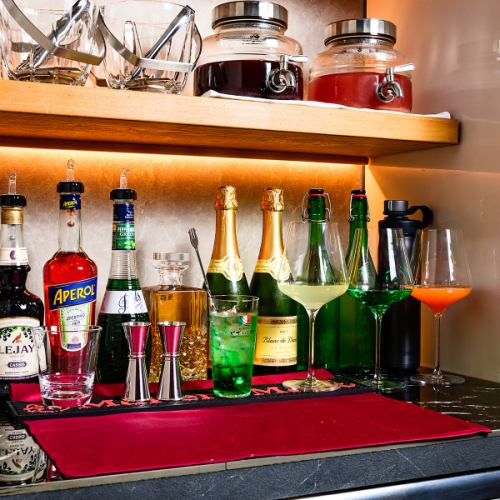 非常適合私人活動。我們提供暢飲套餐(2 小時 1980 日圓),您可以在房間內自行調製雞尾酒。只需額外支付 1000 日元,即可暢飲由我們的侍酒師精心挑選的 24 種葡萄酒。請盡情享用,搭配您的美食。